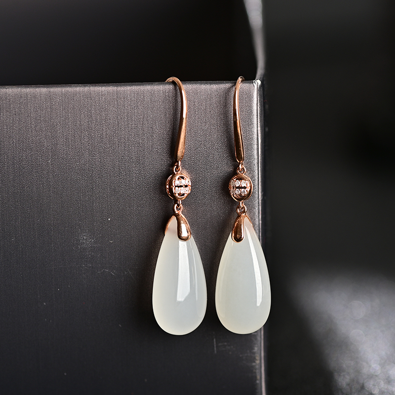 玉柔颜白玉金镶耳饰