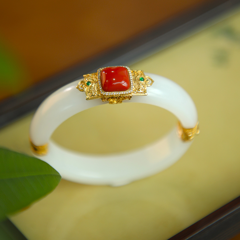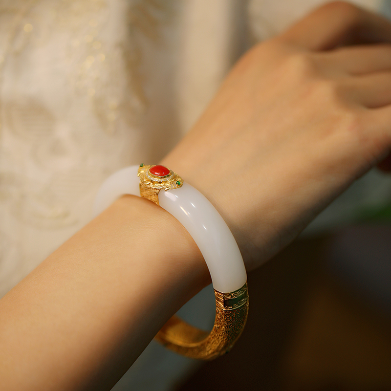 金镶和田白玉手镯